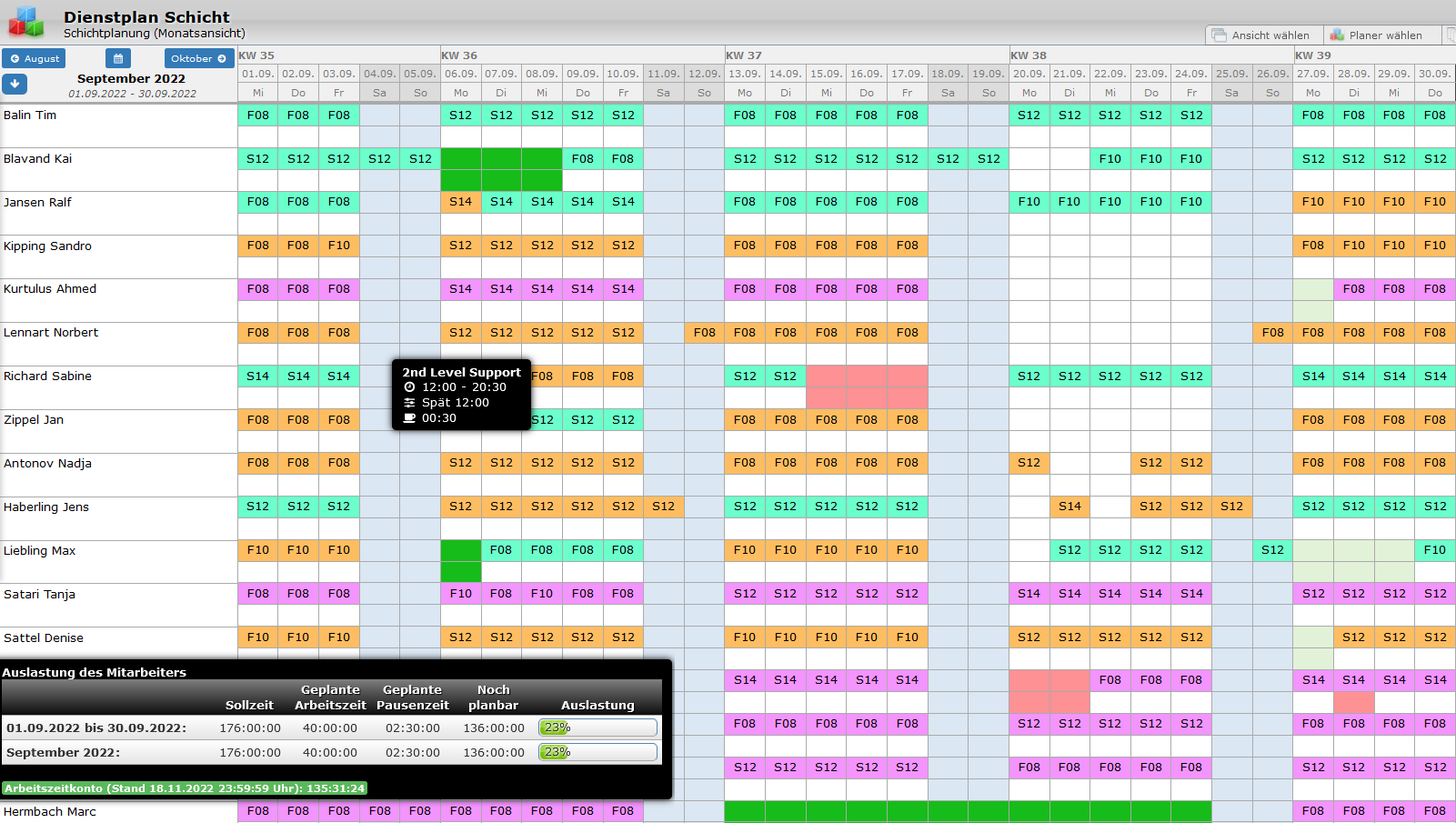 Behalten Sie jederzeit die Auslastung Ihrer Mitarbeiter im Blick. Die vordefinierten Arbeitszeiten werden ständig mit Ihrer Dienstplanung abgeglichen. Sehen Sie mit einem Blick, wie Sie eine ideale Auslastung Ihrer Mitarbeiter erreichen. Überbuchungen sind ebenso schnell behoben, wie zu geringe Nutzungen Ihrer Personalressourcen. Das spart Zeit und vereinfacht die Dienstplanerstellung erheblich.